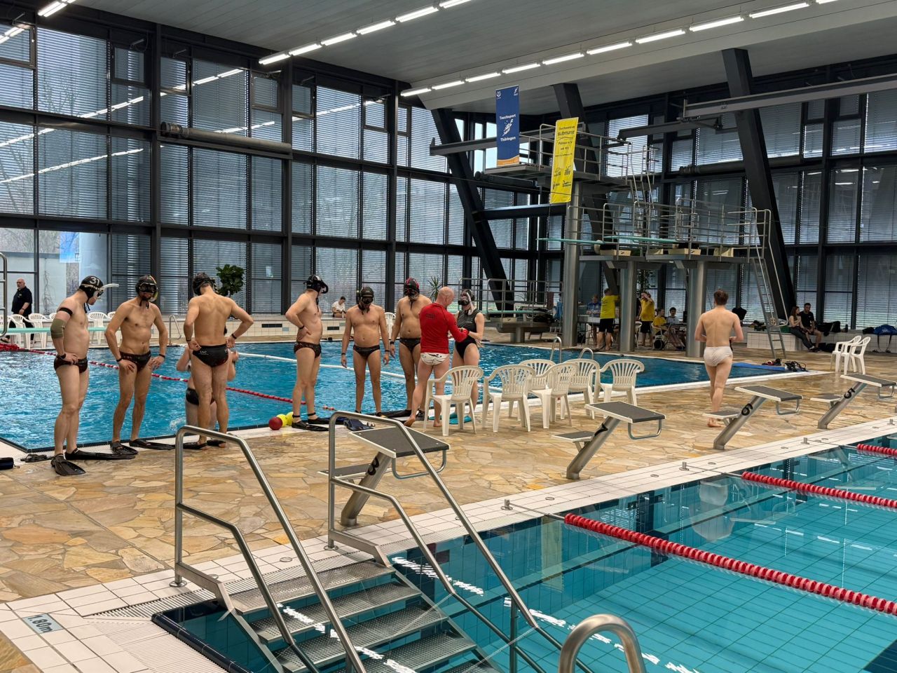 Am Sonntag, dem 15.03.2026, hatten wir ein weiteres Mal die Möglichkeit, unsere Freunde vom TC „submarin“ Pößneck im Unterwasserrugby zu unterstützen. Diese kämpften mit den anderen beteiligten Teams, in unserem Hofwiesenbad in Gera den 5. Spieltag der 1. UWR Bundesliga Süd aus.